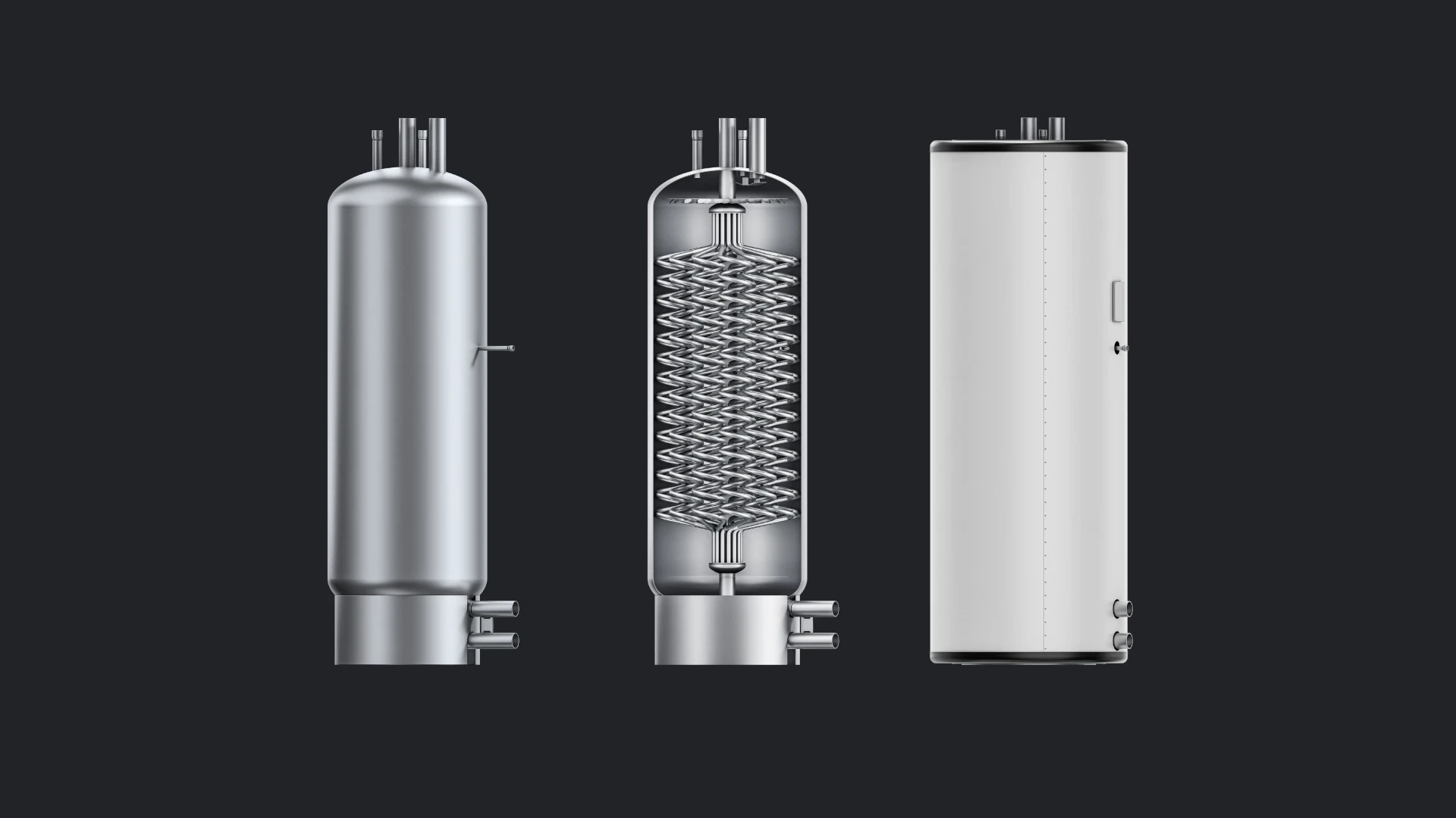 We knew from the start that the performance of the tank would be defined primarily by the efficiency of its internal heat exchanger. In conventional tanks, the heat exchanger is typically made from a single long tube, usually with a diameter of 25–32 mm for tanks of this size. We decided to completely rethink this approach.